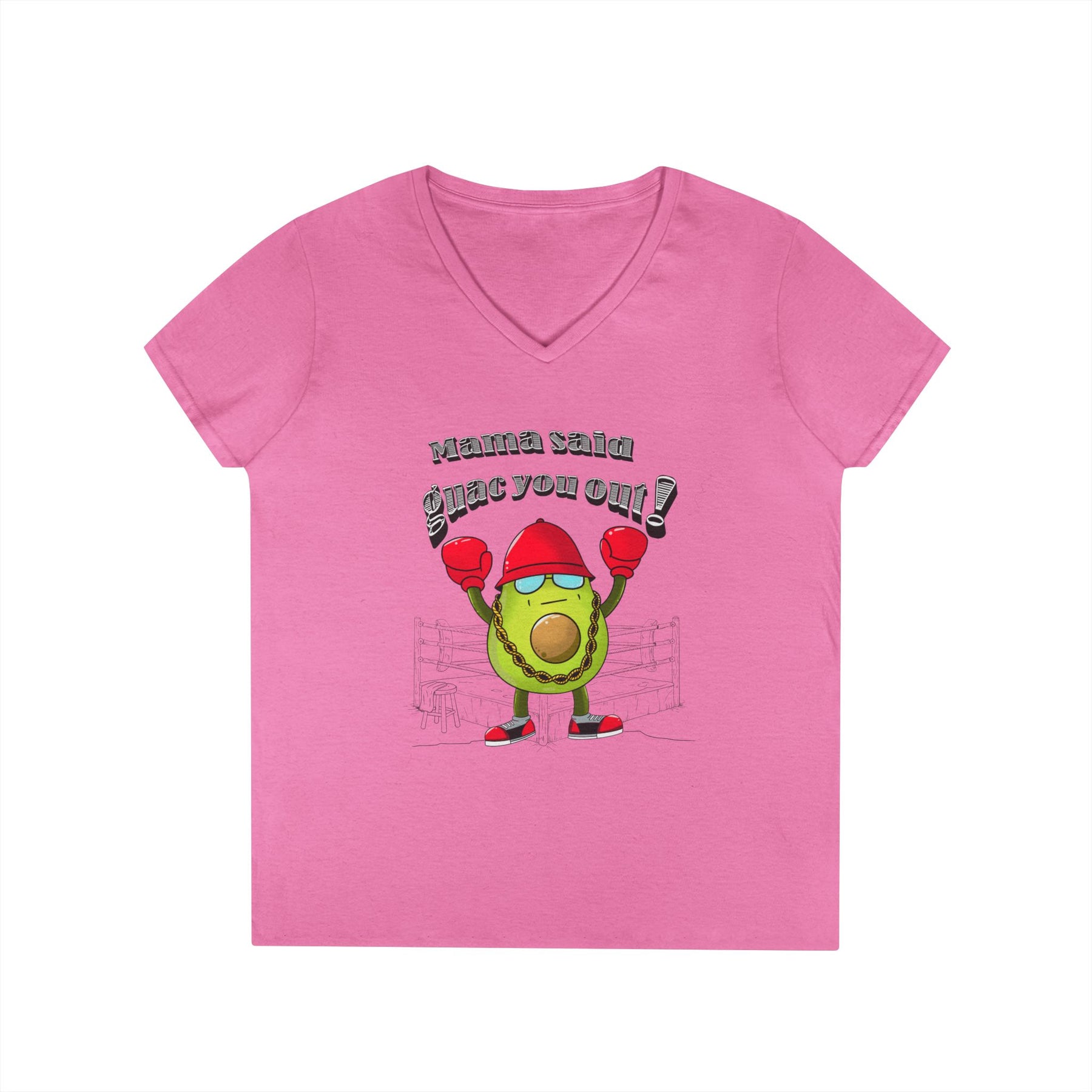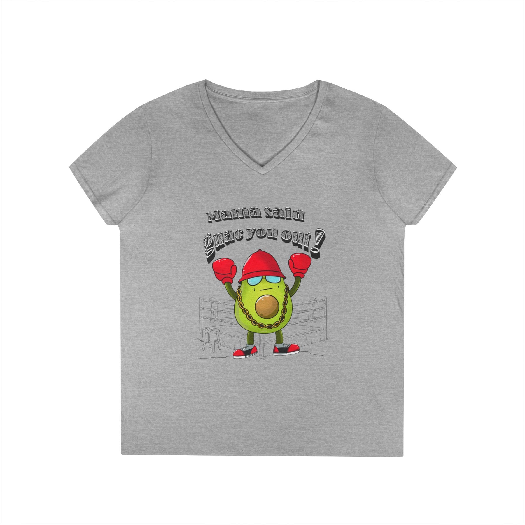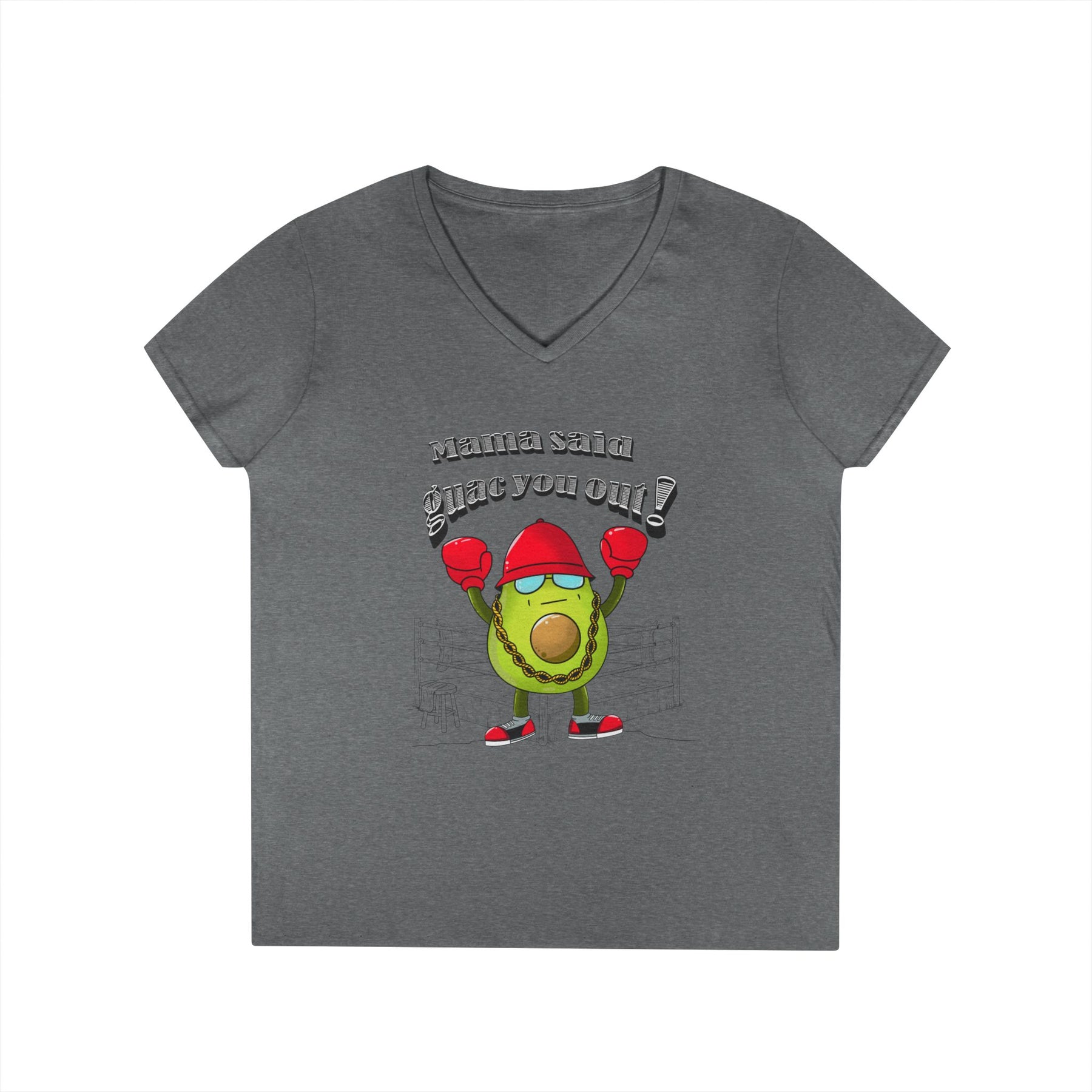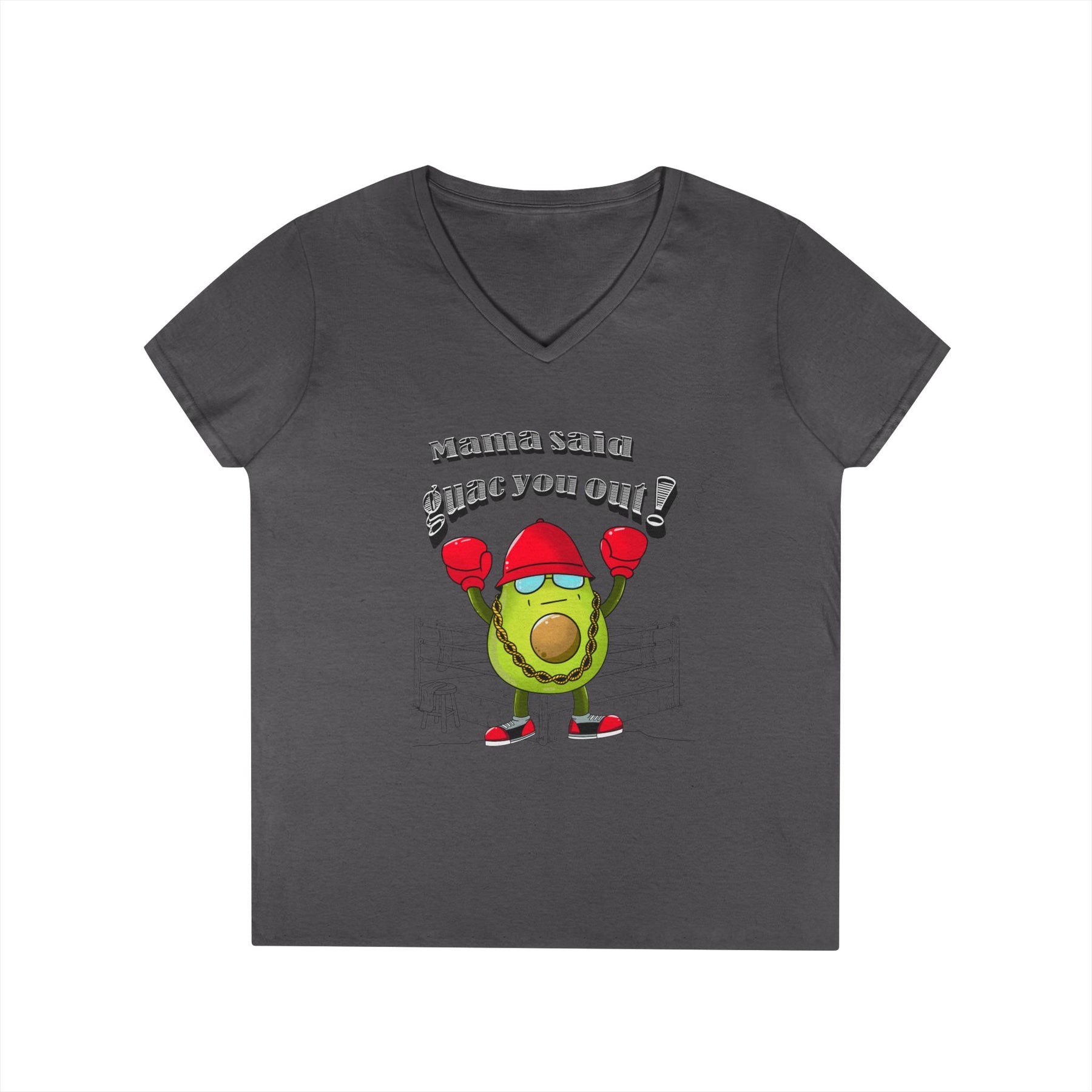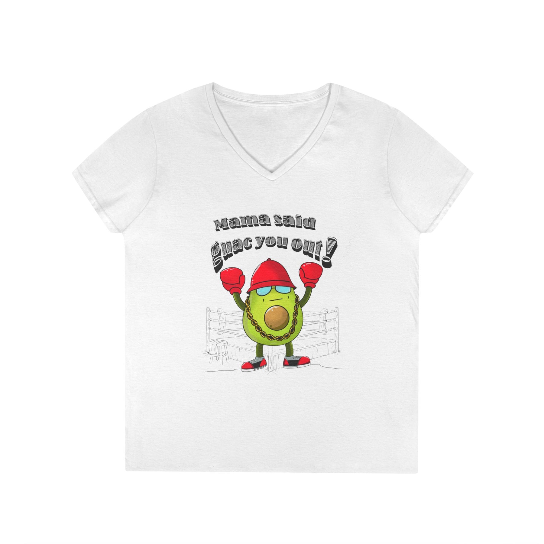 Funny Avocado V-Neck T-Shirt – "Mama Said Guac You On!"